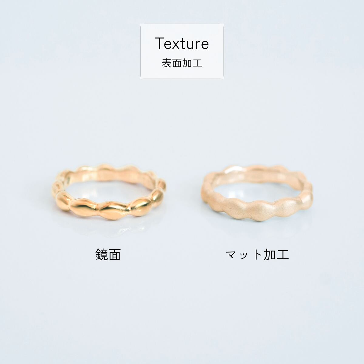 ピンクゴールドはイエローゴールドに比べ、空気に触れることで表面がくすみやすい性質がございます。日常的に使用されない場合は、ジップ付き袋に入れて保管されることをおすすめいたします。